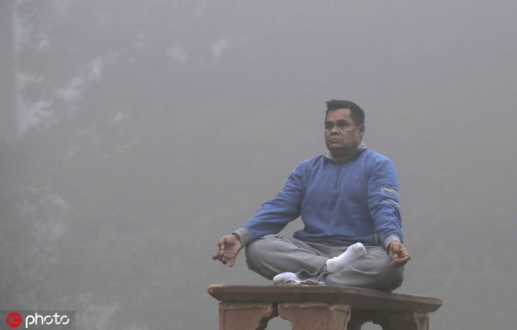 11月8日,印度新德里,市民在重度污染空氣中練瑜伽 圖自IC Photo