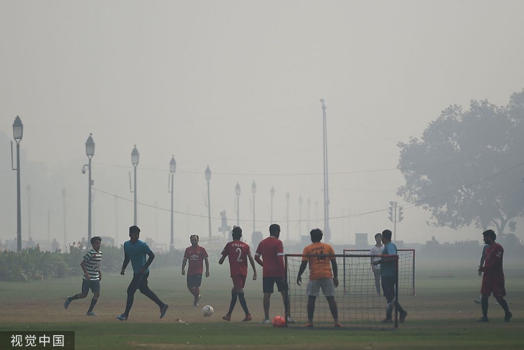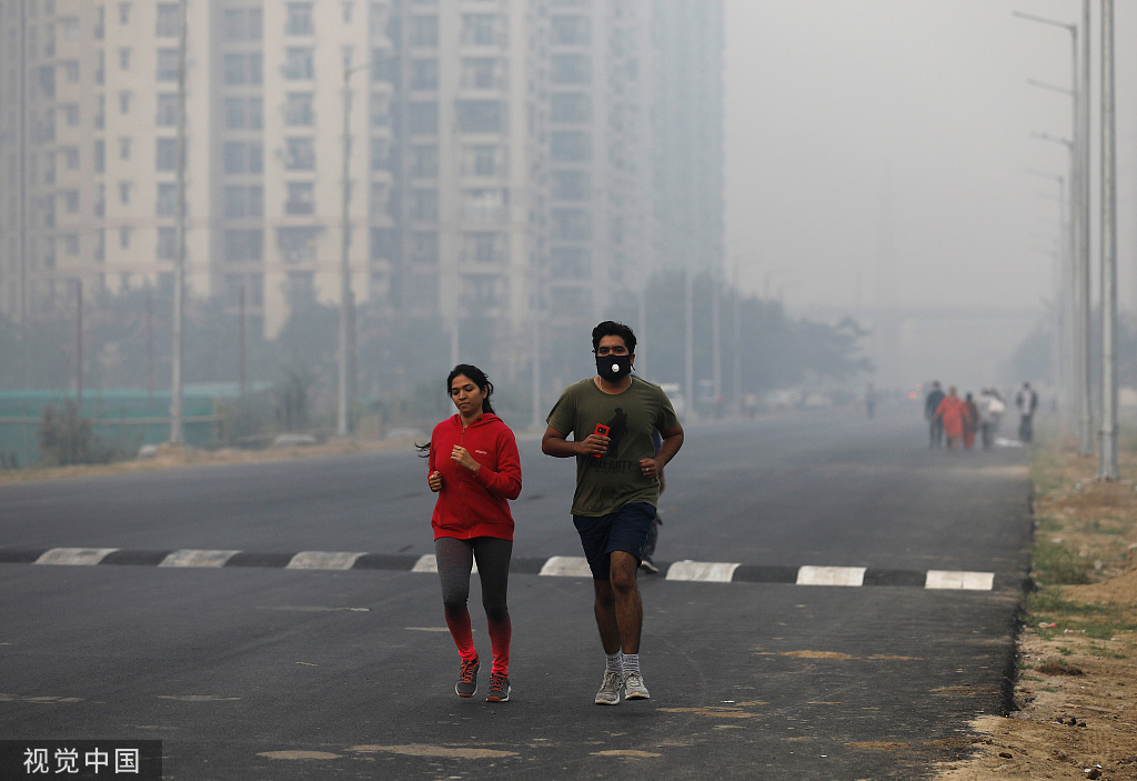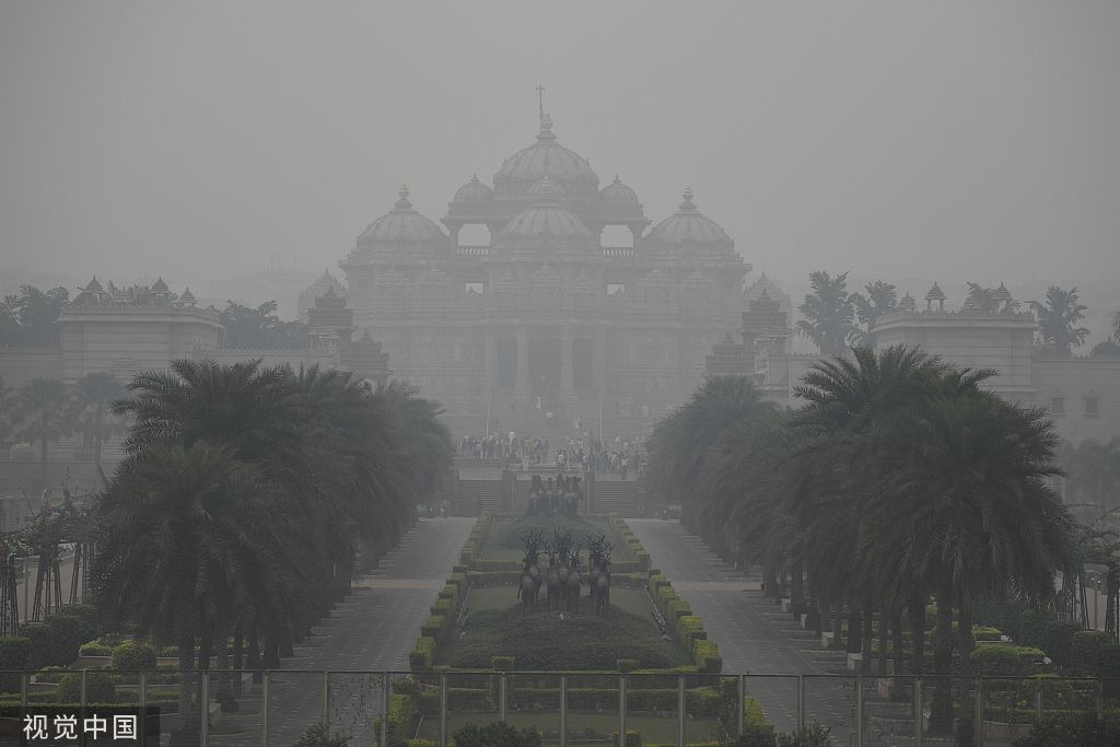 11月12日,印度新德里,當(dāng)?shù)乜諝馕廴境掷m(xù) 圖自視覺中國