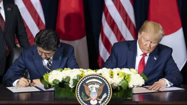 日本首相安倍晉三與美國總統(tǒng)特朗普當(dāng)?shù)貢r(shí)間9月25日下午(日本時(shí)間9月26日凌晨)在美國紐約舉行會(huì)談,就締結(jié)貿(mào)易協(xié)定達(dá)成最終協(xié)議并簽署文件。日本共同社此前發(fā)表評(píng)論認(rèn)為,日美貿(mào)易協(xié)定未能撤銷對(duì)日本產(chǎn)汽車和相關(guān)零部件的關(guān)稅,生效后給日本工業(yè)帶來的好處預(yù)計(jì)十分有限。