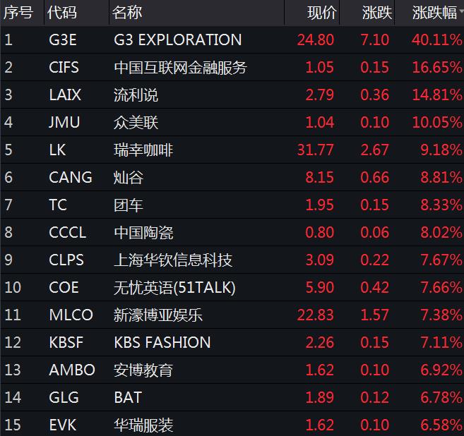 熱門(mén)中概股多數(shù)收漲,阿里巴巴跌0.11%,京東漲1.74%,百度漲3.58%;流利說(shuō)漲14.81%,瑞幸咖啡漲9.18%,無(wú)憂(yōu)英語(yǔ)漲7.66%,微博漲1.47%,拼多多漲2.09%,蔚來(lái)汽車(chē)漲0.66%。青客跌15.04%,品鈦(PT.O)跌11.25%。