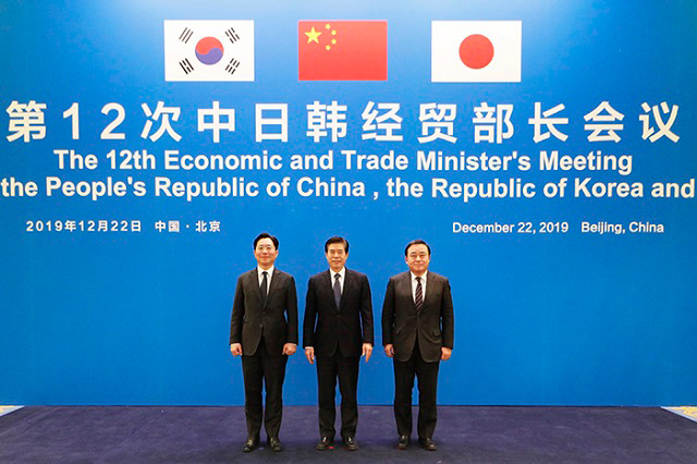 三方重申,將積極推動2020年如期簽署區(qū)域全面經(jīng)濟伙伴關(guān)系協(xié)定(RCEP),并在此基礎(chǔ)上共同加快推進中日韓自貿(mào)協(xié)定談判。