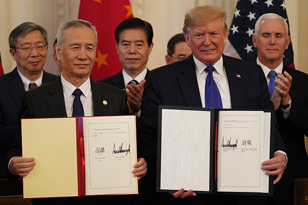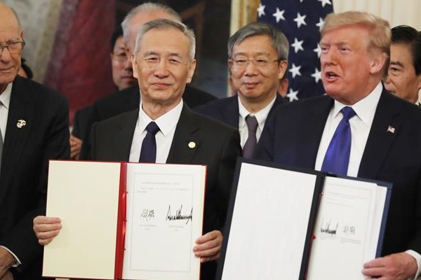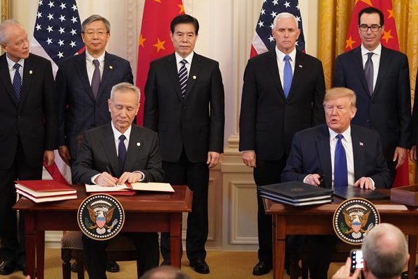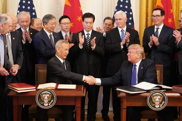 劉鶴宣讀了習近平主席帶給特朗普總統(tǒng)的信。信中表示,中美達成第一階段經(jīng)貿(mào)協(xié)議,有利于中美兩國,有利于世界。下一步雙方要把協(xié)議落在實處,發(fā)揮積極作用,推動中美經(jīng)貿(mào)合作取得更多進展。