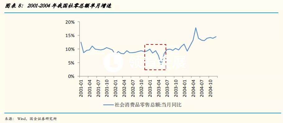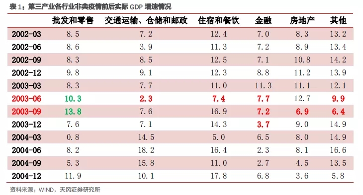 下表是第三產(chǎn)業(yè)各行業(yè)在非典疫情前后實(shí)際GPD的增速情況,從表格中的數(shù)據(jù)我們可以看到,批發(fā)和零售業(yè)在2003年的二季度和三季度增長(zhǎng)迅速,而這時(shí)間,恰恰就是非典疫情后的市場(chǎng)變化,批發(fā)零售迎來(lái)了快速增長(zhǎng),而大多數(shù)的制造企業(yè),都是批發(fā)和零售產(chǎn)品類(lèi)目的上游供應(yīng)商。