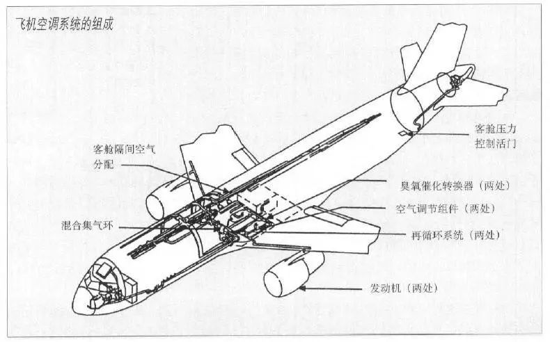 現(xiàn)代飛機的客艙空氣調(diào)節(jié)系統(tǒng)包括引氣系統(tǒng)、臭氧轉換器、空氣調(diào)節(jié)組件、混合集氣環(huán)、再循環(huán)系統(tǒng)、客艙通風系統(tǒng)以及客艙壓力控制系統(tǒng)。