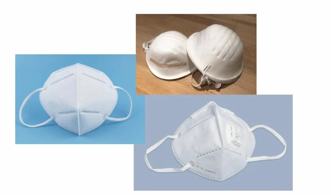 防護(hù)類口罩的等級(jí)分為FFP1、FFP2和FFP3,如下圖所示,都是防護(hù)類口罩的典型樣式。