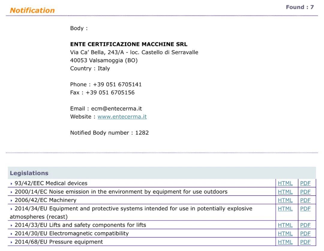 ECM 1282意大利認(rèn)證公告機(jī)構(gòu)