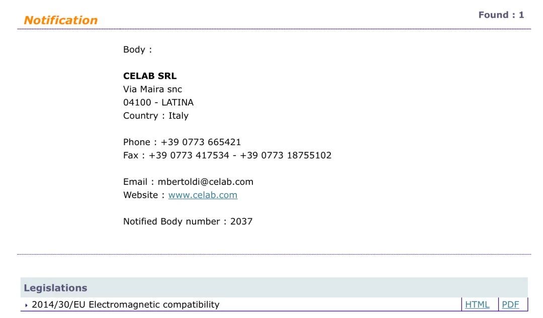 CELAB 2037意大利認(rèn)證公告機(jī)構(gòu)