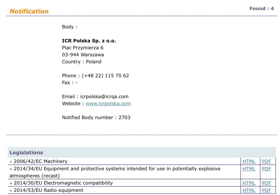 ICR 2703波蘭認(rèn)證公告機(jī)構(gòu)