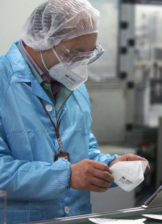 3月10日,3M中國公司漕河涇工廠KN95口罩生產(chǎn)線上,工作人員抽檢口罩質(zhì)量。