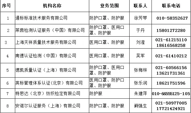 三、中國境內(nèi)具有口罩等防疫用品CE認證能力的認證機構(gòu)名錄