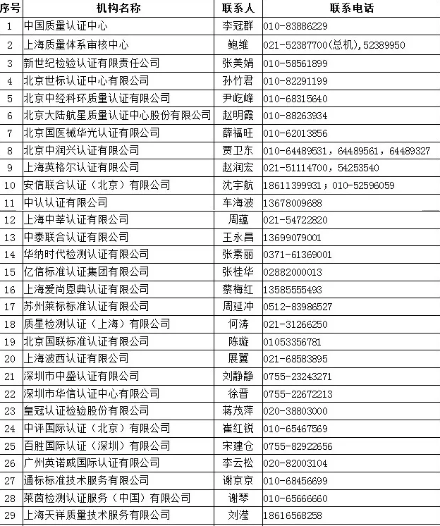 四、中國境內(nèi)可以開展醫(yī)療器械管理體系(ISO13485)認證的機構(gòu)名錄