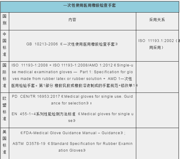 1、一次性使用醫(yī)用橡膠檢查手套國內(nèi)外標準比對