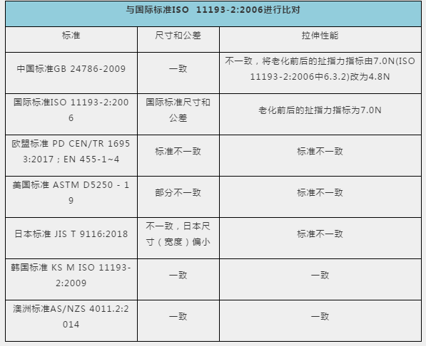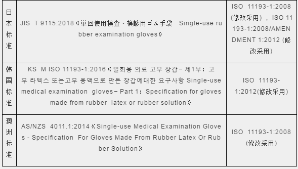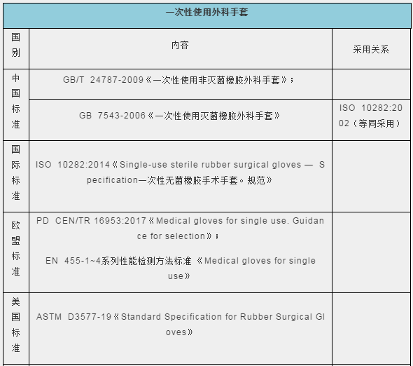 除表中列出的指標之外,在手套分類、所用材料等基本特性方面國際標準、各國國家標準普遍一致。