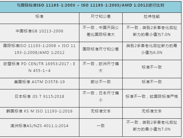 3、一次性使用醫(yī)用聚氯乙烯檢查手套國內(nèi)外標準比對