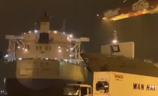 兩艘船均有受損,萬海的集裝箱船身被撞出一些凹陷,一旁正在作業(yè)的起重機也被碰觸受損,刮擦出火花,所幸兩艘船上的人員多平安。
