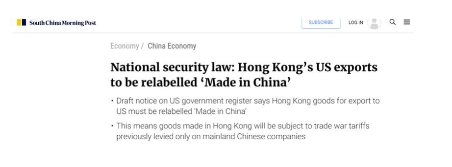 據(jù)媒體最新報道,根據(jù)美國政府的一份公告草案,9月25日以后,香港制造的出口到美國的商品必須貼上“中國制造”的標簽。