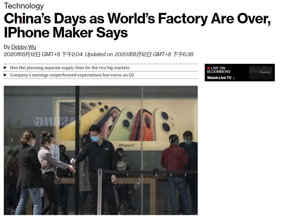 作為蘋果和其他十幾家科技巨頭的重要供應(yīng)商,富士康計劃將其供應(yīng)鏈在中國市場和美國市場之間拆分。富士康董事長劉揚偉宣稱,由于貿(mào)易戰(zhàn),中國作為世界工廠的時代已經(jīng)結(jié)束。