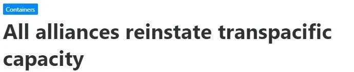 ▲海運(yùn)聯(lián)盟恢復(fù)所有跨太平洋航行