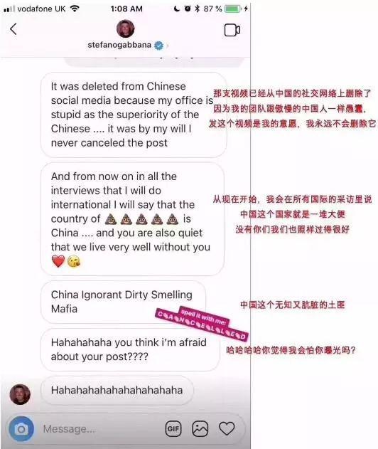 遭受輿論壓力的D&G并沒(méi)有對(duì)此迅速作出澄清或回應(yīng),反而品牌創(chuàng)始人Stefano Gabbnna還在其個(gè)人社交平臺(tái)INS上與網(wǎng)友對(duì)罵并發(fā)表辱華言論,其操作堪稱(chēng)迷惑。最后事件以D&G遭全網(wǎng)封殺及兩名創(chuàng)始人公開(kāi)道歉收尾。