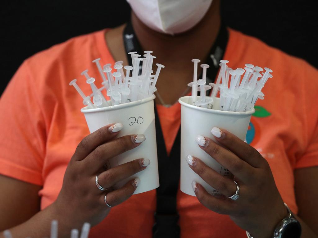 3月24日,一名醫(yī)務(wù)人員在美國(guó)亞特蘭大一處疫苗接種中心準(zhǔn)備新冠疫苗。新華社/美聯(lián)