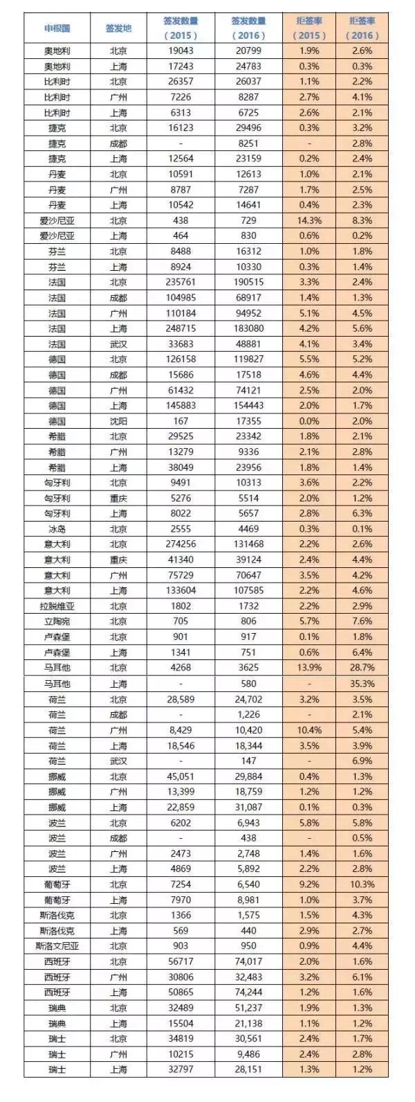 確定好國家后,同一個國家在不同地區(qū)領(lǐng)取的通過率不一樣,例如荷蘭在各個簽發(fā)地的拒簽率從2.1%到6.9%不等,所以簽證的時候可以注意一下遞交的地區(qū),有條件的話最好選擇通過率高的地區(qū)進行簽證。又回到官方說法:其實只要資料完備,保證所有信息完備的話基本不會被拒簽的,盡量不要報僥幸心理。