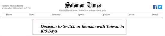 當(dāng)?shù)貢r(shí)間5日,《所羅門(mén)時(shí)報(bào)》在網(wǎng)站的頭條區(qū)放置了一篇題為“100天內(nèi)決定是否與臺(tái)灣‘斷交’”的報(bào)道。內(nèi)文寫(xiě)道,所羅門(mén)群島外交部長(zhǎng)耶利米 ·馬涅勒(Jeremiah Manele)指出,是否將“外交承認(rèn)”從臺(tái)灣轉(zhuǎn)向中國(guó)大陸將在接下來(lái)的100天內(nèi)給出答案。