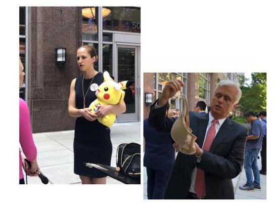 發(fā)言的美方代表們,時不時展示出玩具、圣經、毛刷、內衣等樣品,堅決反對加征關稅!