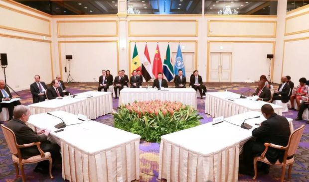 28日一早舉行的這次中非領(lǐng)導(dǎo)人會(huì)晤,是一場(chǎng)“在客場(chǎng)舉行的主場(chǎng)活動(dòng)”。會(huì)晤由習(xí)近平主席主持,與會(huì)的外方領(lǐng)導(dǎo)人包括中非合作論壇前任非方共同主席國南非總統(tǒng)拉馬福薩、非洲聯(lián)盟輪值主席國埃及總統(tǒng)塞西、中非合作論壇現(xiàn)任非方共同主席國塞內(nèi)加爾總統(tǒng)薩勒和聯(lián)合國秘書長(zhǎng)古特雷斯。
