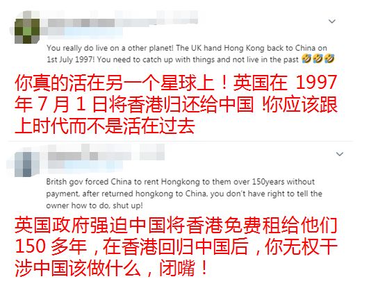 而讓英國網(wǎng)友都看不下去的,正是以亨特為首的一些英方人士近期屢屢就香港事務(wù)表達“關(guān)切”的行為。