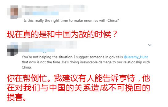不僅如此,不少英國網(wǎng)友更是焦急喊話亨特及英國政府:別破壞中英關(guān)系!