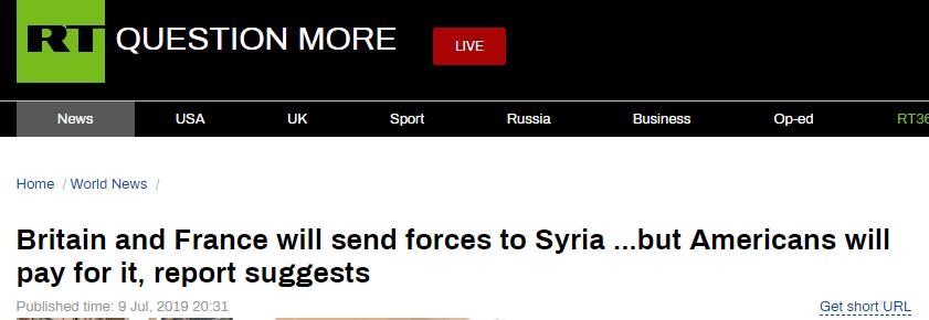 在美國總統(tǒng)特朗普計(jì)劃從敘利亞撤軍之際,一份新的報(bào)告稱,英國和法國將派遣軍隊(duì)駐敘利亞,以填補(bǔ)美軍撤出后的空缺。不過,為此埋單的卻并非英法,而是華盛頓。