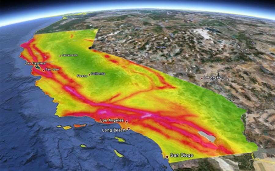 地質(zhì)斷層被認為是加州地震頻發(fā)的罪魁禍首。加州地處于卡斯卡迪亞俯沖帶上Cascadia subduction zone),最危險的圣安德烈斯(San Andreas)斷層縱貫加州1280公里的海岸線。棕櫚泉、洛杉磯和舊金山等人口密集的大中城市,均坐落在該斷層之上。