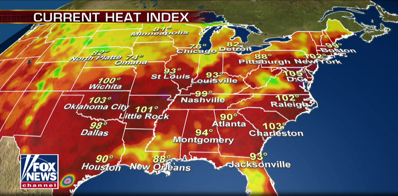 “福克斯新聞”顯示,紐約州最高溫度達(dá)到了102華氏度(約合39攝氏度)