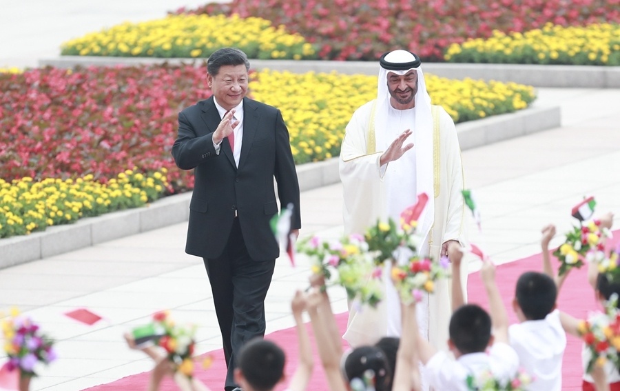 習(xí)近平說,去年7月,我對阿聯(lián)酋成功進行國事訪問,我們共同宣布中阿建立全面戰(zhàn)略伙伴關(guān)系,開啟中阿攜手共進的嶄新篇章。一年來,雙方積極落實訪問成果,兩國關(guān)系保持全方位、高質(zhì)量發(fā)展。