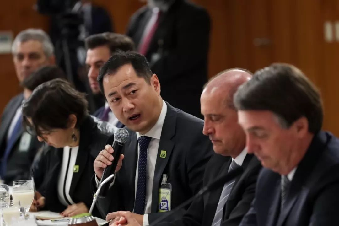 總統(tǒng)跟我擁抱剛坐下,博索納羅在幾位部長和助手的簇擁下走進餐廳。從餐桌另一頭開始,他依次與每一名記者握手致意。走到我面前,他問:“你來自日本還是韓國?”我告訴他:“我來自中國。”