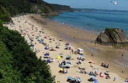 英國威爾士,當地迎高溫天氣,民眾到海灘享受休閑時光。