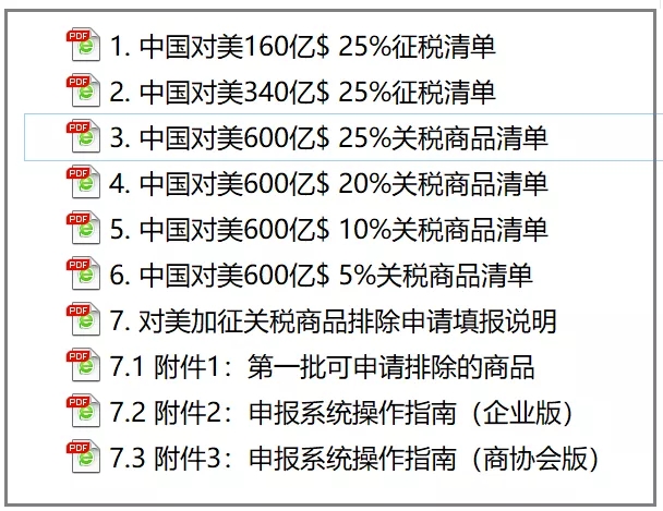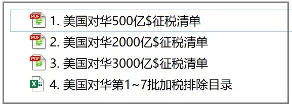 A. 美國對(duì)華所有加征關(guān)稅清單,及排除清單。