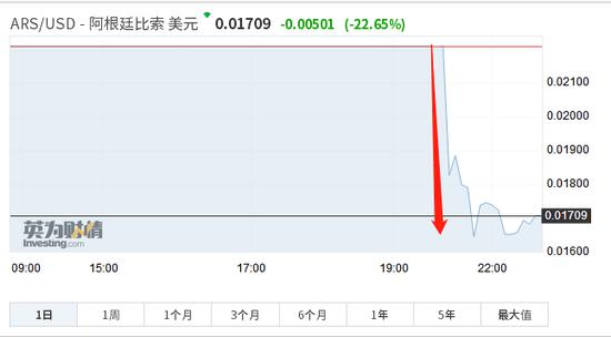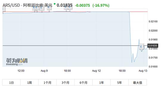 另?yè)?jù)路透社報(bào)道,阿根廷以歐元計(jì)價(jià)的債券下跌近9美分,債券收益率則上漲了近3%。在北京時(shí)間8月12日(周一)晚間美股開(kāi)盤(pán)后,一只追蹤阿根廷股市的基金也暴跌了22%。