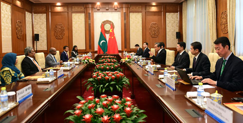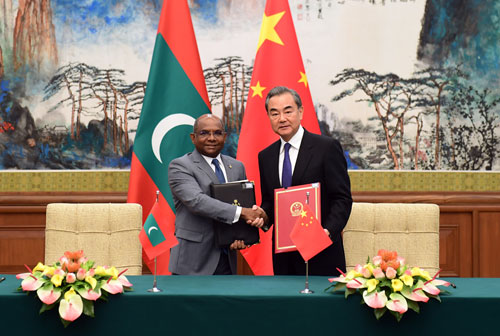 2019年9月20日,國(guó)務(wù)委員兼外交部長(zhǎng)王毅在北京同馬爾代夫外長(zhǎng)沙希德舉行會(huì)談。