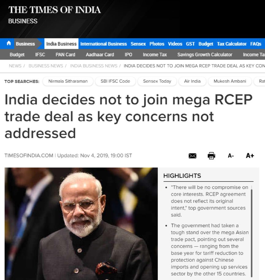 加入RCEP對(duì)印度整體上是有利的,這種情況就猶如中國(guó)2001年加入WTO。當(dāng)時(shí)中國(guó)人有種種擔(dān)心,但是我們有強(qiáng)大的決策機(jī)制,而且事實(shí)證明,加入WTO倒逼了中國(guó)的產(chǎn)業(yè)進(jìn)步,極大促進(jìn)了中國(guó)的工業(yè)化進(jìn)程。