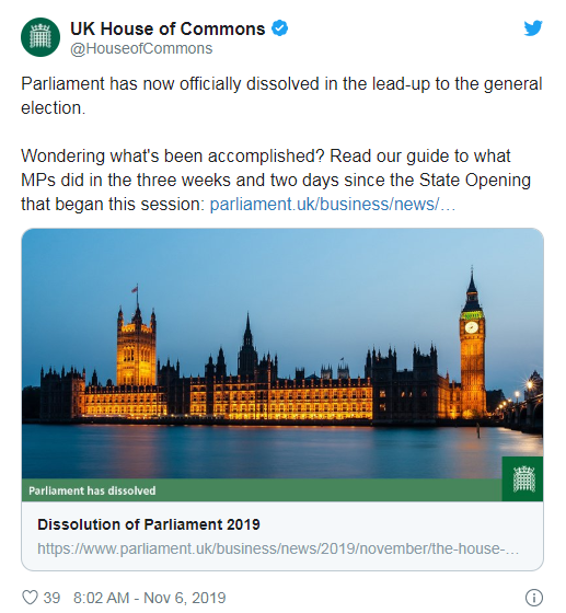 當(dāng)?shù)貢r間6日凌晨,英國議會宣布正式解散,為大選做好準(zhǔn)備。根據(jù)英國議會法案,議會解散必須在大選前25天進行。