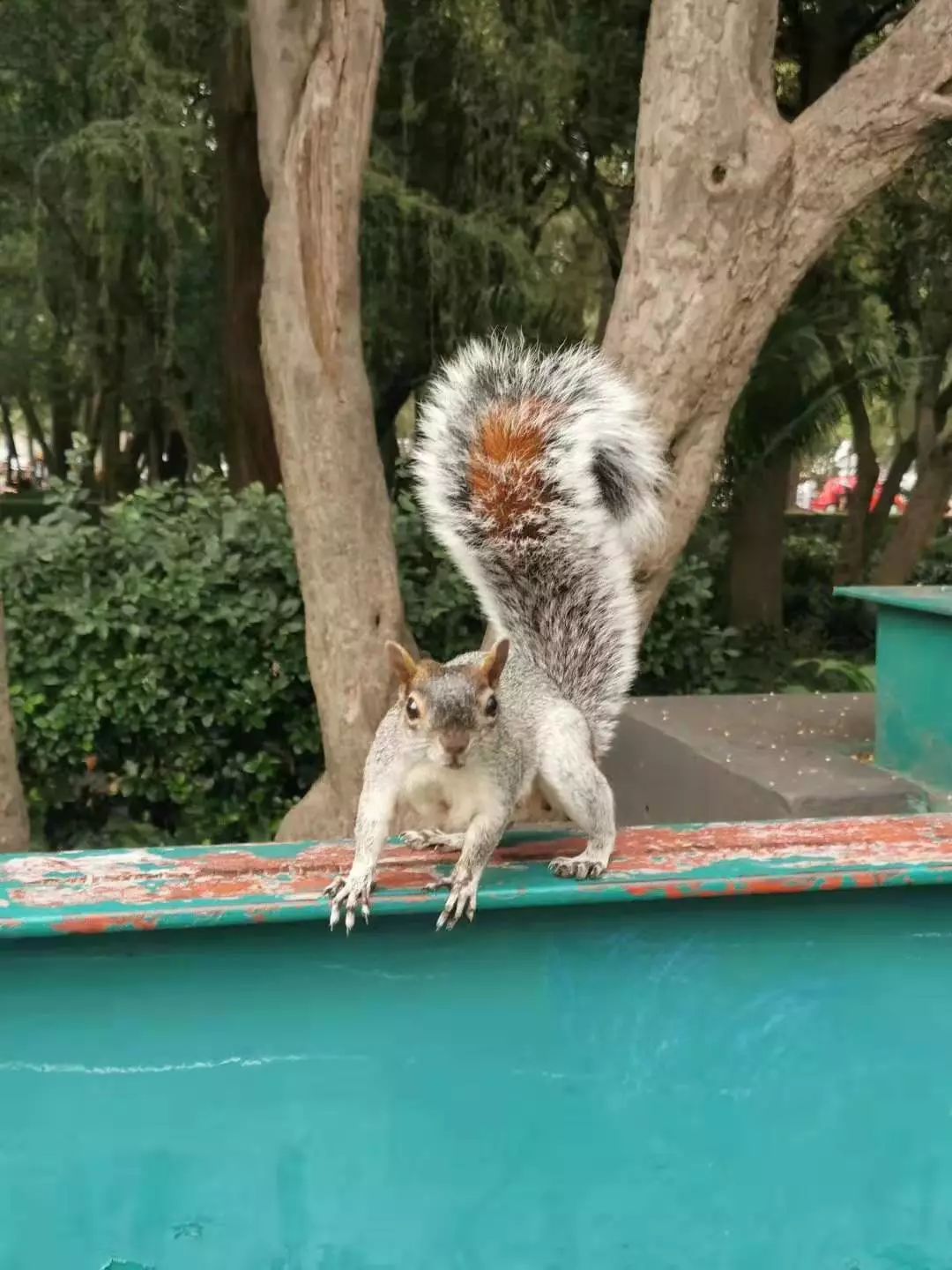 博物館門口的小松鼠尾巴特別迷人不怕生,還會(huì)跟著人走~