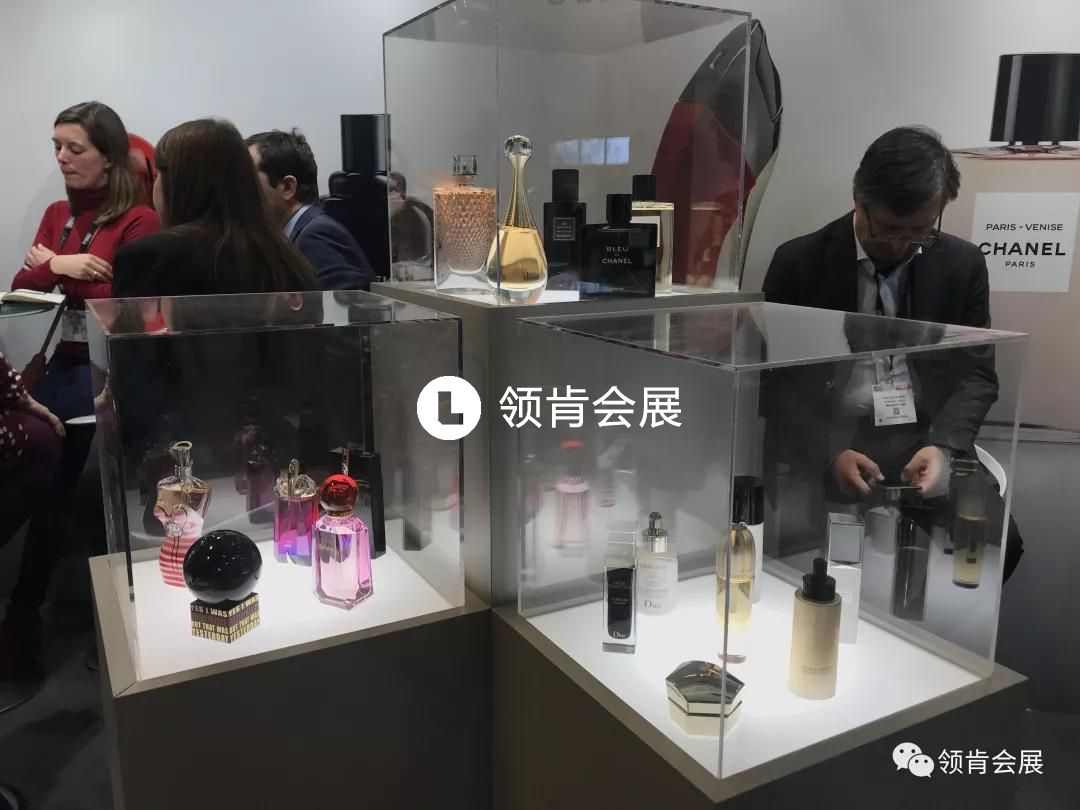參會產(chǎn)品有香水瓶、成品包材、紙盒包裝盒、箱包、氣霧劑及配件、原料機械、酒瓶包裝設(shè)計、泵頭等,現(xiàn)場不乏有香奈兒、LV主題展臺。