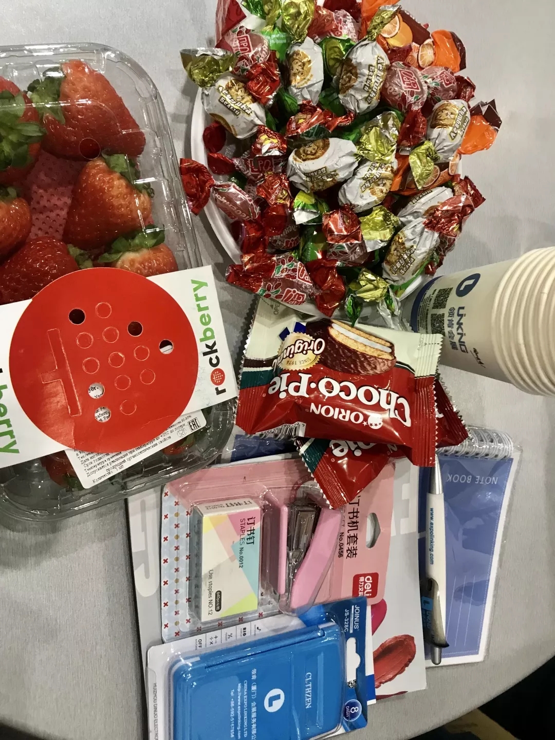 我們給團(tuán)員的每個展位都準(zhǔn)備一些必須品和零食水果,領(lǐng)肯特制銷售筆記本、訂書機(jī)、計算器、筆、水果、點(diǎn)心、糖果、咖啡、茶等,給洽談業(yè)務(wù)提供更好的便利!