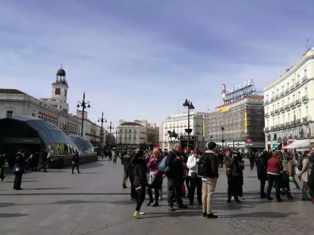 太陽門廣場位于馬德里市中心,呈半圓形,有10條街道呈放射狀向外延伸,是馬德里政治活動中心和商業(yè)中心。其是個具有歷史意義的廣場,也是能體現(xiàn)馬德里風土人情的地方。