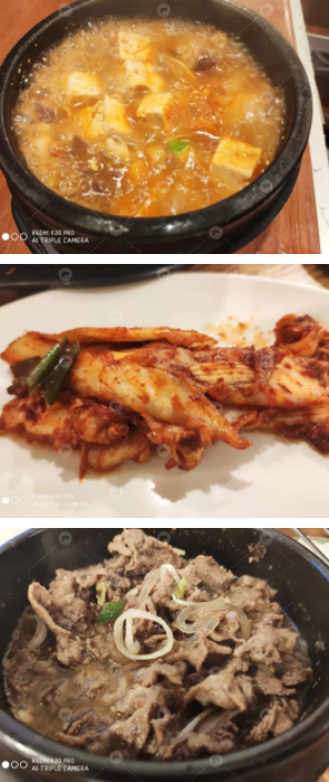 還有韓式牛肉飯、韓式豆腐大骨湯、韓國(guó)泡菜、石鍋拌飯·······