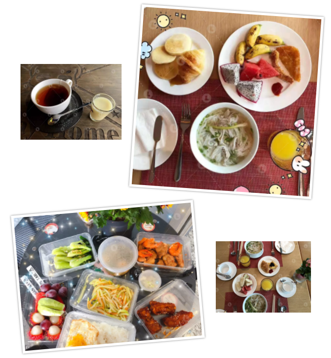 各種精致的早餐、午餐盒飯、水果、下午茶····