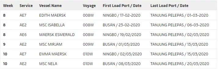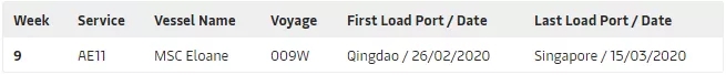 2 月 26 日始發(fā)于中國山東青島港的遠(yuǎn)東至地中海(西向)航線 AE11 MSC Eloane 009W 將取消掛靠,停航一周。