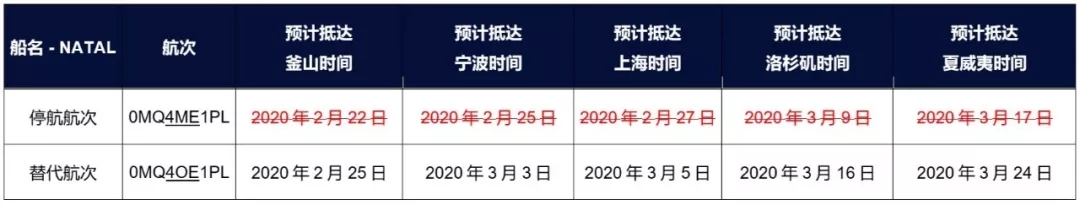 • 可選擇 EXX - NATAL (0MQ4OE1PL) 從亞洲出口至夏威夷,預(yù)計(jì)2020年3月24日抵達(dá)