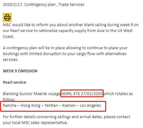 MSC在第9周將再次出現(xiàn)空航,以理順從亞洲到美國西海岸的運(yùn)力供應(yīng)。